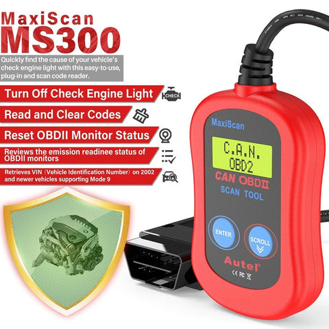 MS300 universal OBD2 scanner can help you quickly find out why your vehicle’s check engine light is on with its easy-to-use, plug-in features.